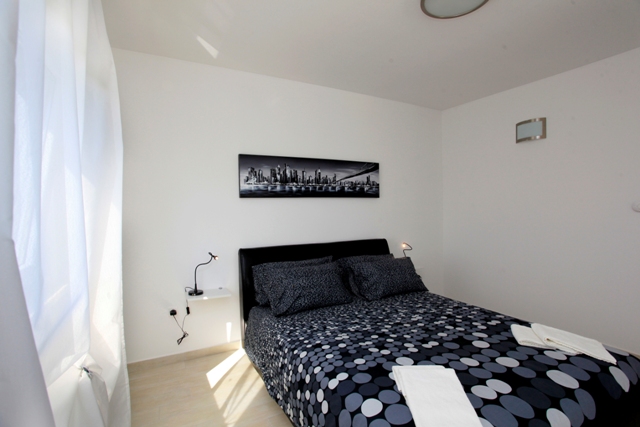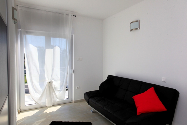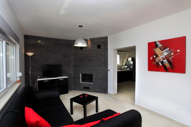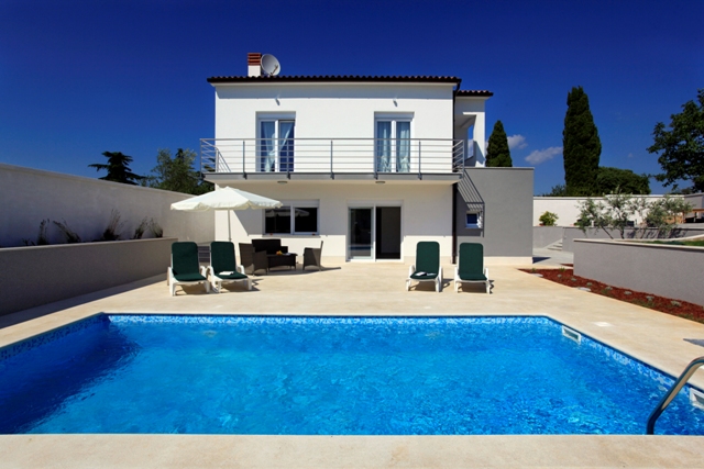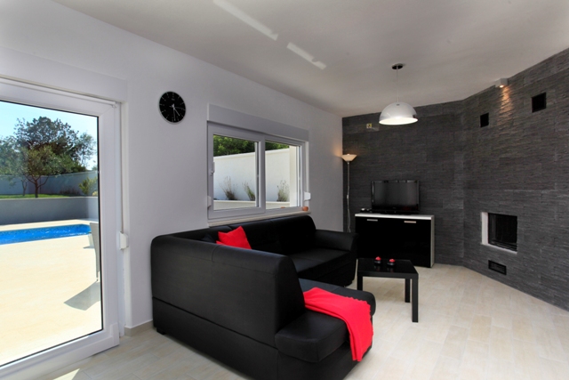 Villa Taste is a modern newly built house equipped to the highest architectural and design standards. It is located in the southern part of Istria in place Valbandon. Distance Ville Taste from the nearest beach is 800 meters and to the nearest summer resort Fazana only 2 km. The city of Pula, economic and tourist centre of the region, which is famous for its archaeological sites from the Roman period and the Amphitheater, restaurants and shopping malls is only 8 km away. The ground floor of this beautiful modern Villa is a spacious living room with open fireplace, SAT/TV, fully equipped kitchen with dining area and bathroom (shower). Stairs leading to the floor will take you to the two bedrooms (each has access to the terrace and overlooks the pool and the park that surrounds the estate) and bathroom (bath). From the living room patio doors are leading into the terrace and swimming pool (6x4 m) that is surrounded by beautiful garden with olive trees.