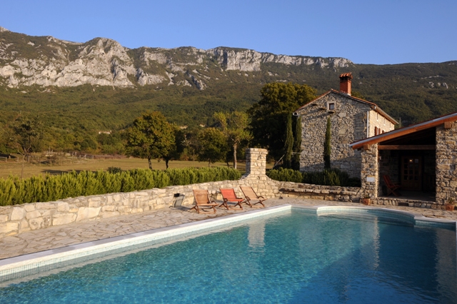 Situated on the border of Ucka Nature Park, and just a short drive from the crystal waters of Istria's eastern seaside, this lovingly restored 1907 stone country house features a 5x10 metre pool, a spacious loggia with double barbeque grills and an extensive estate with stunning views in all directions. Preserving the essence of country living, Stancija Sisol's countryside setting offers both peace and seclusion and quick access, if desired, to major seaside destinations. Whether you choose to actively explore nearby Cepic field, hike the Ucka highlands, relax in the privacy of the grounds, or make day trips to nearby medieval towns, Stancija Sisol will leave you refreshed and rejuvenated. On the ground floor a covered terrace running the length of the house provides access to a large fully equipped open-plan kitchen and dining area adjoining a living room centred on an open fireplace. An adjacent hallway leads to two washrooms. The first floor opens to two spacious bedrooms with solid oak double beds, exposed original beams, brilliant views of the front yard and stunning sunsets. The top floor loft features a very spacious twin bedroom.