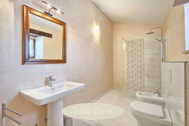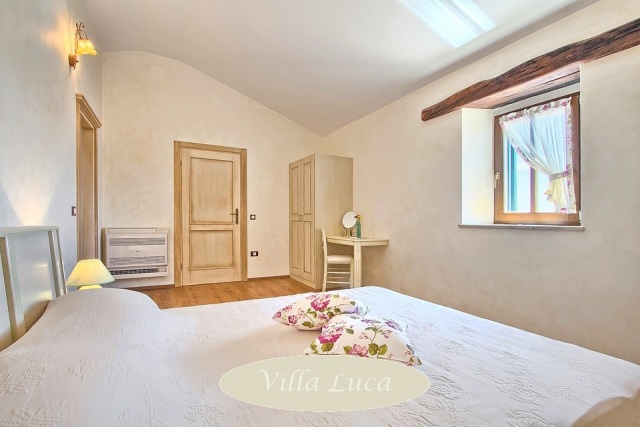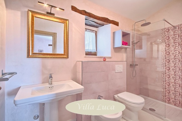 Villa Luca can accommodate up to 12 people in its three buildings. The main house consists of a living room, with SAT/TV and a fire place, indoor and outdoor dining area, fully equipped kitchen, two bedrooms en-suite and a toilet. The second building has got two bedrooms with double beds and a bathroom, and the third building has got a bedroom with two single beds, a bathroom and a playroom for kids.