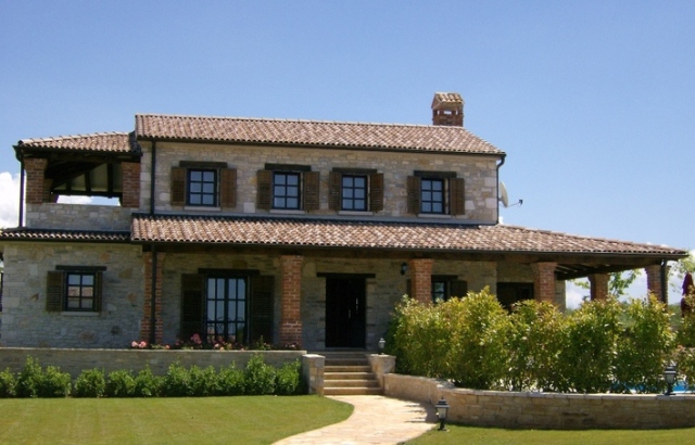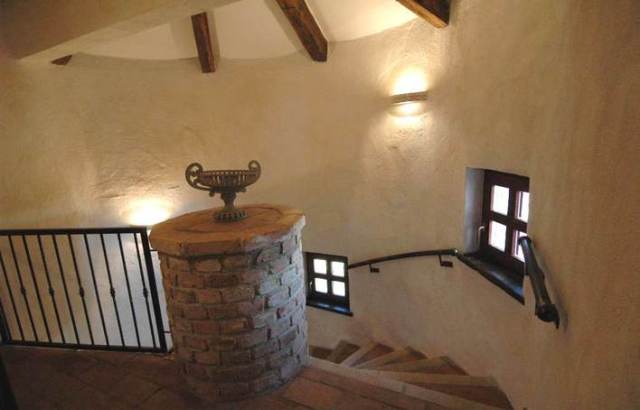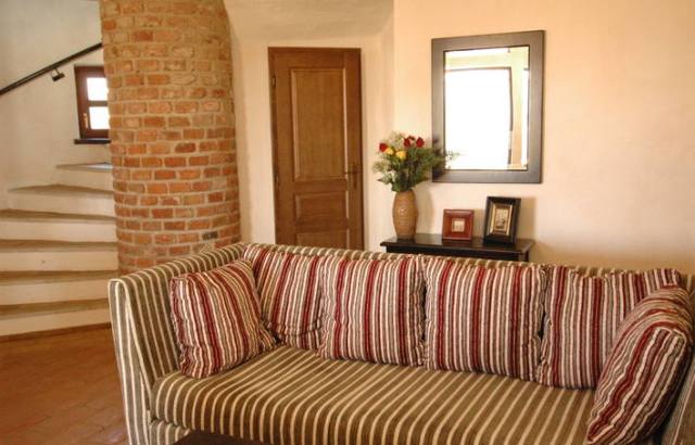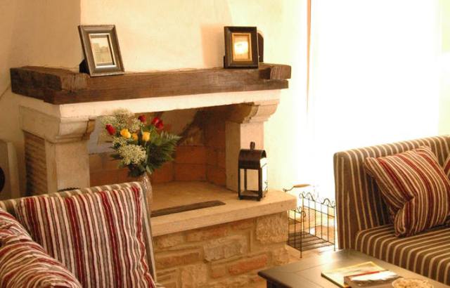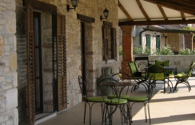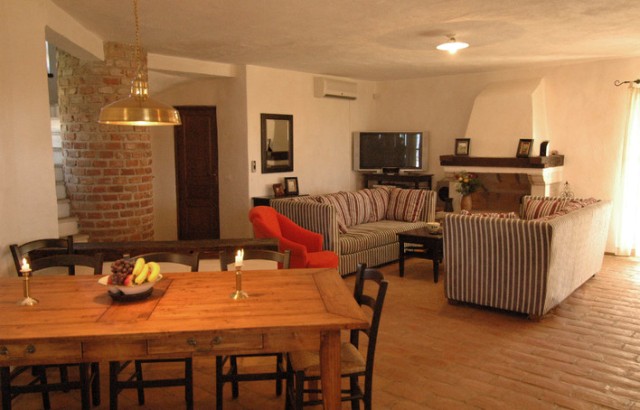 Villa Mentha is furnished in the rustic style. The floors in the rooms are made of wood strip flooring and the other floors are covered with ceramic tiles. The decorative wood beams on the ceilings provide a sweet rustic flair. In the living room there is an open fireplace lined with decorative stone.