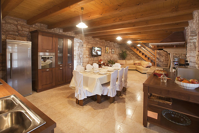 Villa Zaneta is enchanting villa with beautiful stone architecture which blends in perfectly with the surrounding Istrian countryside. Its traditional style used for construction gives it a very special atmosphere, a mixture of tradition, comfort and luxury. It consists of two houses and it can accommodate up to 12 people. First house (Zaneta (8)) has 4 en-suite rooms, fully equipped kitchen, dinning, living area and a covered terrace with seating and BBQ area. Second house (Zaneta (4)) has 2 en-suite rooms, fully equipped kitchen, dinning and living area. From both houses is a beautiful garden view. It the large garden with Mediterranean plants there is a swimming pool (32 m²) with sun deck.