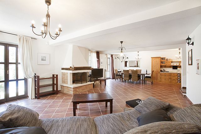 - Connected full equipped kitchen (dishwasher, ceramic stove, oven, microwave, fridge, freezer, toaster, coffee machine), dining and living area (open fire place, TV/SAT, A/C
