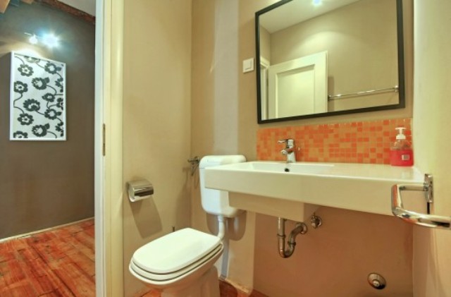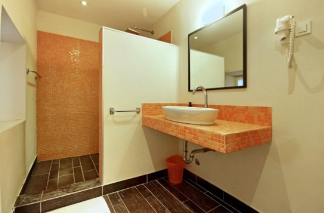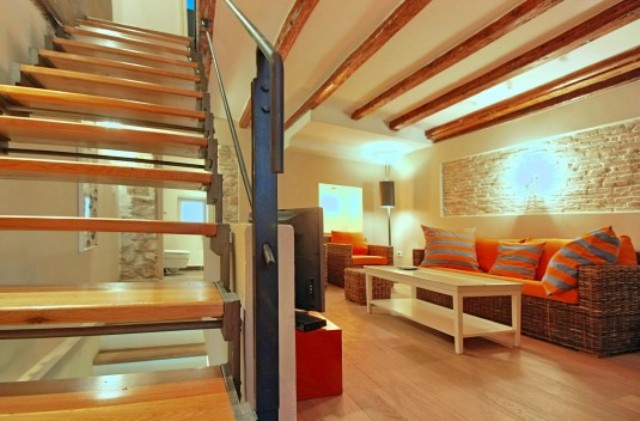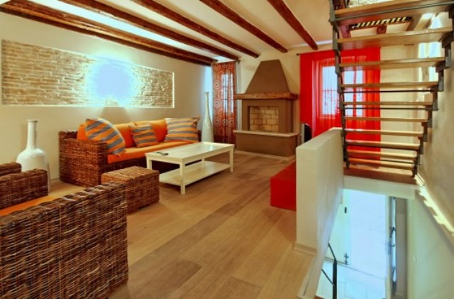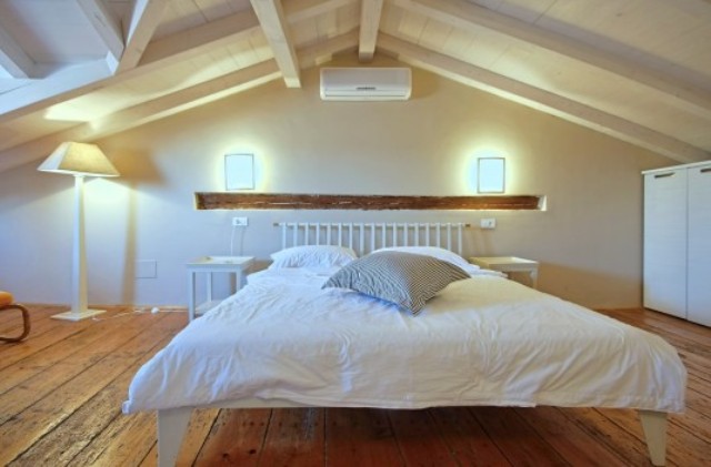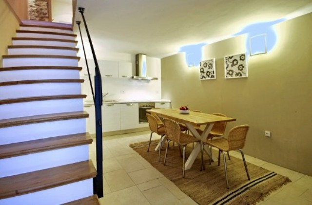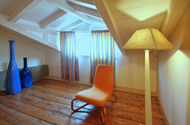 The main bathroom is on the first floor, while on the second floor there are two bedrooms, one with a double and one with a single bed, and another bathroom. On the third, top floor, there is a spacious third bedroom, with a double bed set under the exposed roof beams. Property is partly air-conditioned, as well as a safe deposit box.