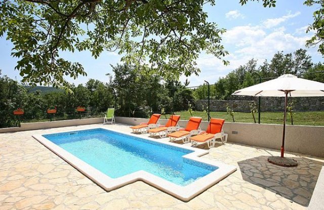This beautiful house was built in 1947, and completely renovated in 2008,and it has 116m2. The house is equipped with new furniture with lots of details and woodwork, handmade from the finest woods. Spacious and functional it is located in a small Istrian village with private homes called Breg. It has a spacious garden and a small tavern with a separate entrance equipped with new furniture and a bathroom with shower. The kitchen has got a gas/electric cooker , refrigerator ,freezer, coffee machine, microwave and a washing machine. There are three bathrooms in the house, two with shower and one with a bathtub. In the house there are three TV-SAT, one DVD,CD and free Wi-Fi, air-conditioning, electric heating and a fireplace. The house has got a closed natural plot of 3300m2, four parking places, a terrace of 56 m2, six sun loungers and a barbecue. There is also a swimming pool of 24m2. From this peaceful village you can go to all parts of Istria, which are only an hour away.